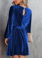 Home Trendy Festival & Party Wear Happy Sailed Women’s Velvet Cocktail Dress Spring Fashion Lantern Sleeve High Waist A-Line Skater Party Dresses with Belt