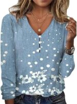 HOTYD Womens Boho Floral Tops Dressy Casual Long Sleeve Button Up V Neck Shirts Plus Size Summer Tops for Women