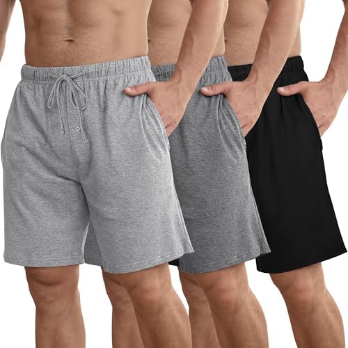 Home Bottoms IHU 3 Pack Men’s Cotton Pajama Shorts – Soft Sleepwear & Lounge Bottoms with Drawstring & Pockets Sleep Shorts for Men
