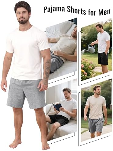 JINSHI Men’s Pajama Shorts Soft Comfortable Lightweight Elastic Drawstring Men Lounge Sleep Shorts with Pockets