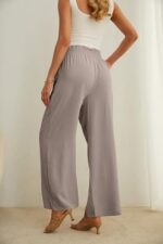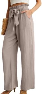 IWOLLENCE Women’s Wide Leg Pants with Pockets High Waist Adjustable Knot Loose Casual Trousers Business Work Casual Pants
