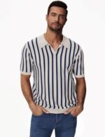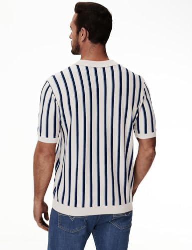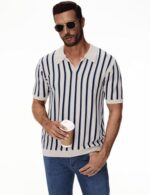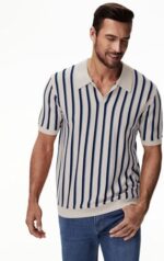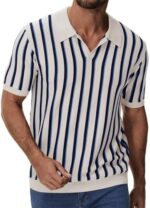iWoo Men’s Knit Polo Shirts Short Sleeve Vintage Striped Casual Golf Polo Classic Collared T Shirt