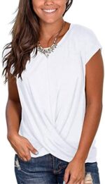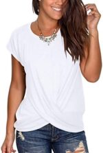 Jescakoo Women’s Short Sleeve Round Neck T Shirt Front Twist Tunic Tops Casual Loose Fitted