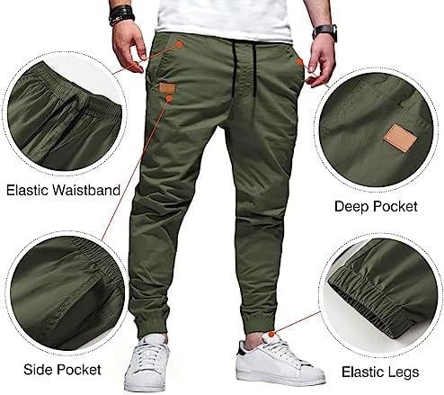 JMIERR Mens Casual Joggers Pants – Cotton Drawstring Chino Cargo Pants Hiking Outdoor Twill Track Jogging Sweatpants Pants