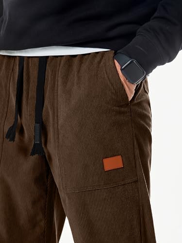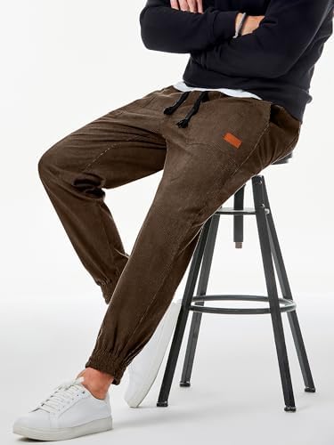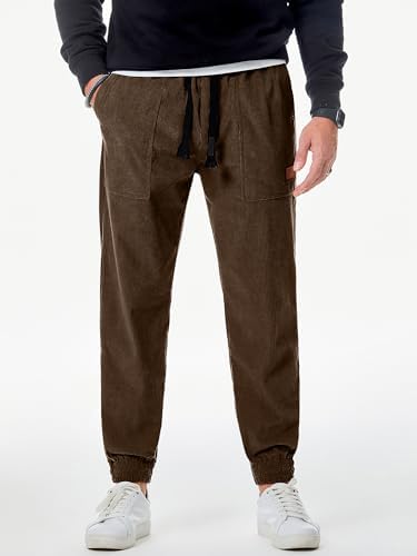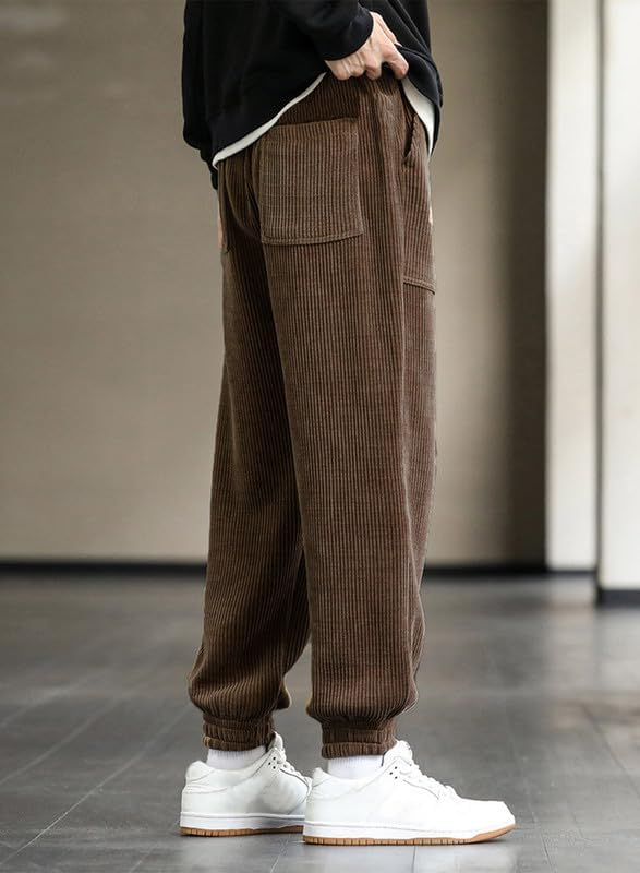 JMIERR Mens Corduroy Joggers Pants Casual Cargo Pants Drawstring Elastic Waist Baggy Tapered Sweatpants with Pockets