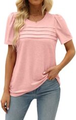 OFEEFAN Womens T Shirts Short Sleeve Pleated Dressy Casual Scooped Neck Summer Tops Blouses