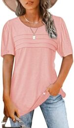 JomeDesign Womens Summer Tops Short Sleeve Crew Neck Shirts Puff Sleeve Casual Tshirts