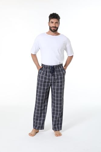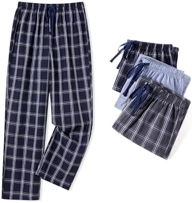JupiterSecret Mens Pajama Pants Set Cotton Lightweight Plaid Sleep & Lounge Pants, PJ Bottoms with Pockets and Button Fly