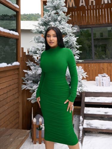 Be the first to review “LAGSHIAN Women’s Cocktail Bodycon Long Sleeve Mock Neck Mesh Ruched Midi Party Dress” Cancel reply