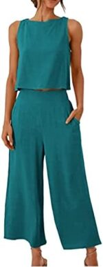 Be the first to review “Linen Sets for Women 2 Piece Spring Fashion 2025 Plus Size Sleeveless Back Button Wide Leg Capri Pants with Pocket” Cancel reply