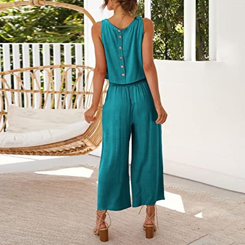 Linen Sets for Women 2 Piece Spring Fashion 2025 Plus Size Sleeveless Back Button Wide Leg Capri Pants with Pocket