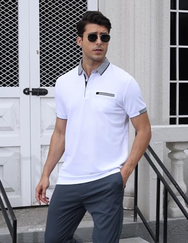 LIUPMWE Polo Shirts for Men with Pocket Elegante Plaided Short Sleeve Cotton T Shirts Golf Shirt
