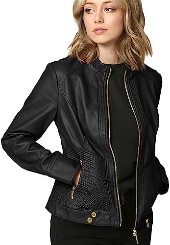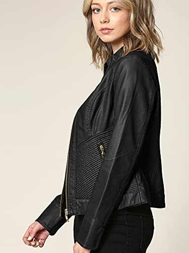 Lock and Love Women’s Faux Leather Moto Biker Jacket Coat with Removable or Non-Removable Hood