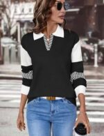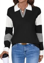 Be the first to review “LOMON V Neck Long Sleeve Loose Sweaters Color Block Striped Knitted Pullover Jumper Tops” Cancel reply