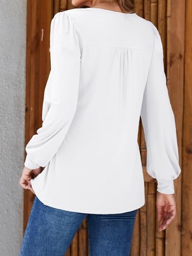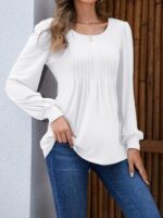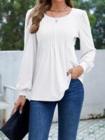Long Sleeve Shirts For Women Fall Fashion 2025 Womens Tunic Tops Pleated Crew Neck Puff Sleeve Blouses Dressy Casual
