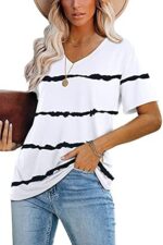 Home Kids’ Fashion Teen Fashion Lunivop Womens Tops Casual V Neck Short Sleeve Solid Color Basic T Shirt