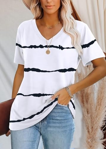 Lunivop Womens Tops Casual V Neck Short Sleeve Solid Color Basic T Shirt