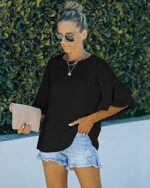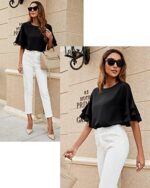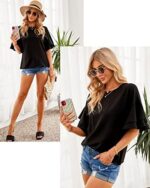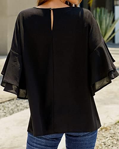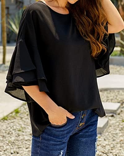 luvamia Women’s Casual 3/4 Tiered Bell Sleeve Crewneck Loose Tops Blouses Shirt
