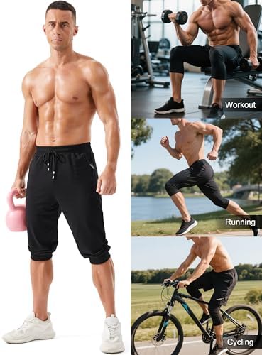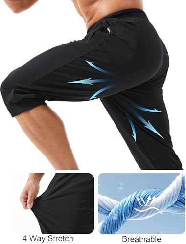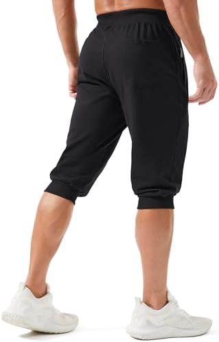 MAGCOMSEN Men’s 3/4 Joggers Capri Pants with Zipper Pockets Slim Fit Training Running Workout Capri Joggers