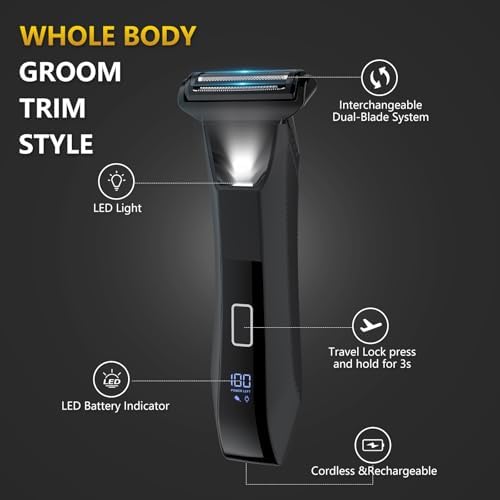 Manscape Ball Trimmer for Men, 2-in-1 Body Hair Groomer and Groin Hair Shaver -Dual-Head Trimmer for No-Nick Shaving, Smooth Grooming, Lightweight with Travel Lock, IPX7 Waterproof, LED Display