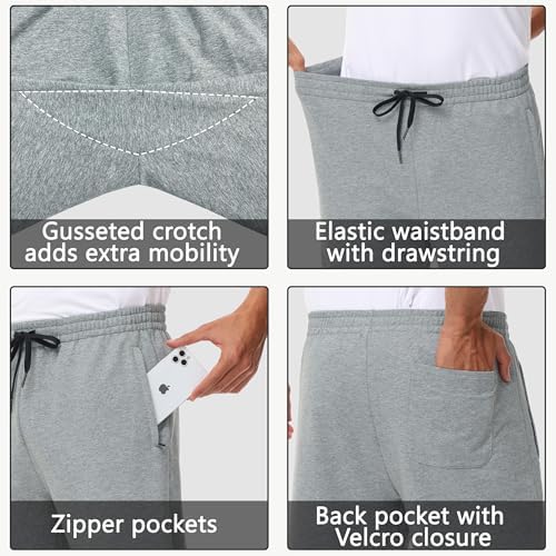 Men’s 30″ 34″ 36″ Cotton Yoga Sweatpants – Athletic Casual Lounge Open Bottom Straight Leg Loose Pants Zipper Pockets
