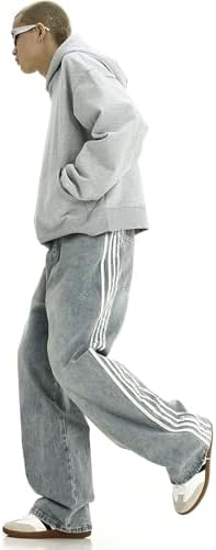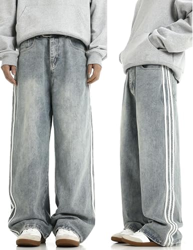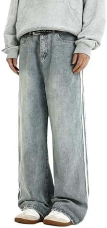 Mens Baggy Denim Jeans Casual Striped Pants Straight Wide Leg Jeans Oversized Hip Hop Pants Vintage Skater Track Jeans