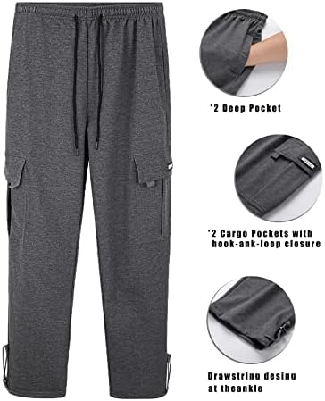 Men’s Cargo Sweatpants Loose Fit Pants Joggers for Men with Pockets, Open Bottom Drawstring