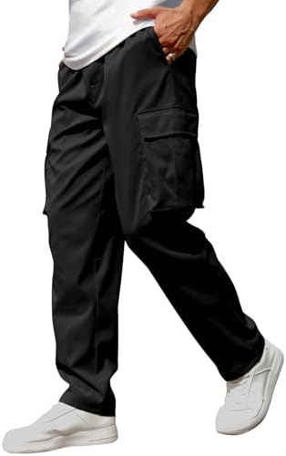 Men’s Casual Cargo Sweatpants Waist Drawstring Joggers Tactical Loose Fit Pants for Men with Multi Pockets