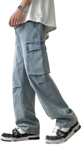Men’s Casual Vintage Loose Straight Hip Hop Cargo Denim Streetwear Jeans Pants