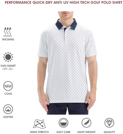 Mens Golf Shirts Short Sleeve Moisture Wicking Dry Fit Print Performance Athletic Casual Golf Polo Shirts for Men