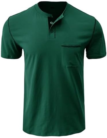Men’s Henley Shirt Lightweight Short Sleeve T-Shirt Casual Stylish Button Cotton Shirt