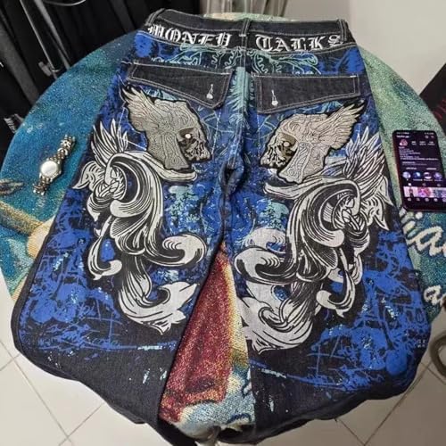 Be the first to review “Men’s Hip Hop Retro Embroidered Jeans Street Hip Hop Y2K Gothic Straight Loose Wide Leg Pants” Cancel reply