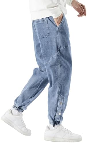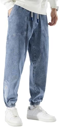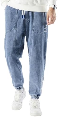 Men’s Jean Joggers Denim Cargo Pants Streetwear Sweatpant Jeans with Drawstring Elastic Waist