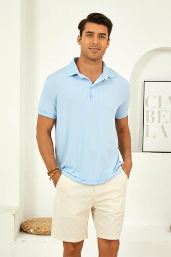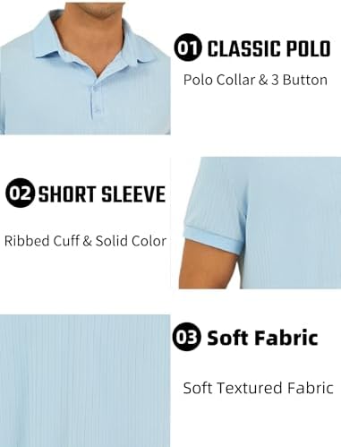 Mens Polo Shirts Short Sleeve Texture Collared Polo Shirt Classic Button Golf Polo T Shirts Summer Tees