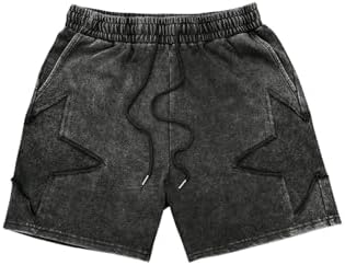 Men’s Star Graphic Y2k Shorts Drawstring Waist Distressed Vintage Track Shorts Streetwear