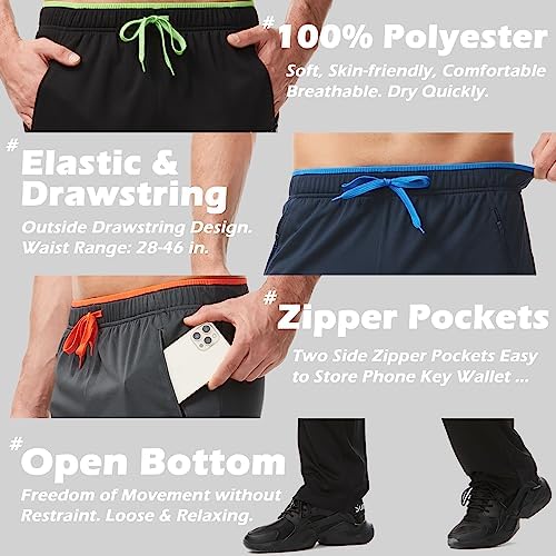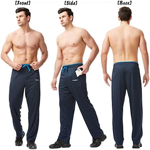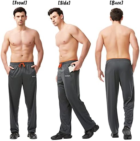 Mens Sweatpants with Zipper Pockets Open Bottom Athletic Pants for Workout,Running,Training,Jogging,Gym