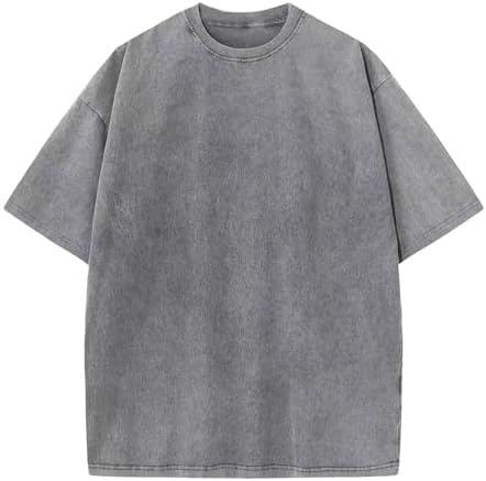 Men’s Washed Vintage tees Loose fit Cotton Oversized t-Shirts for Man Short Sleeve Casual Streetwear