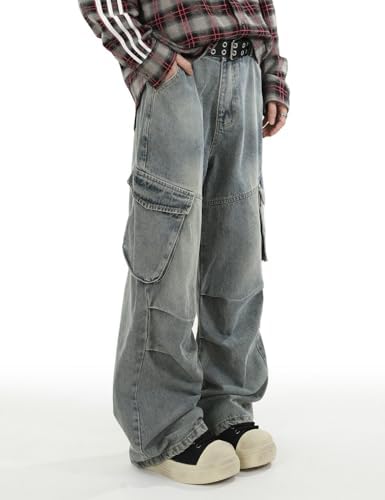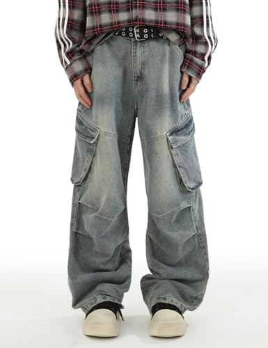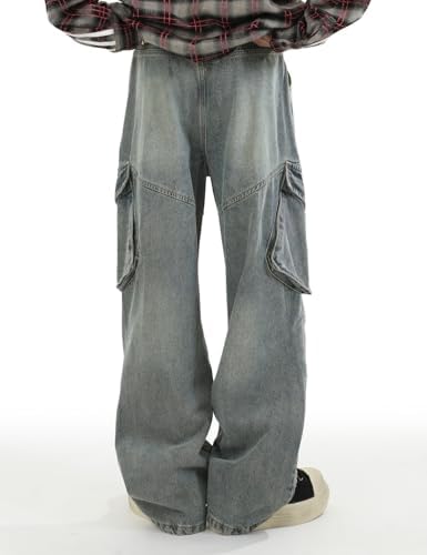Men’s Y2K Baggy Hip Hop Jeans Wide Leg Denim Pants Casual Loose Fit Trousers Streetwear