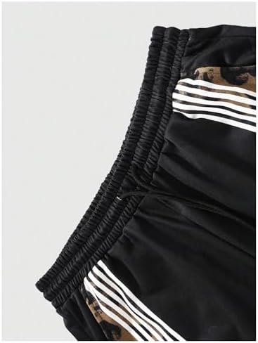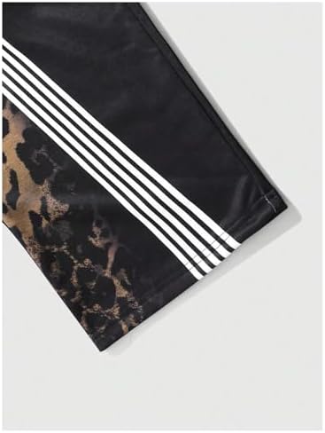 Men’s Y2K Leopard Print Baggy Sweatpants Vintage Side Stripe Drawstring Jogging Pants Streetwear