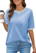 Be the first to review “MEROKEETY Women’s 2025 Short Sleeve Striped Color Block T Shirts Crewneck Loose Casual Tee Tops” Cancel reply