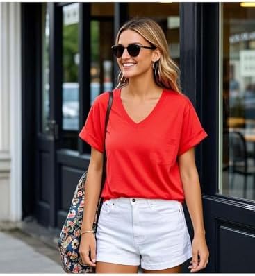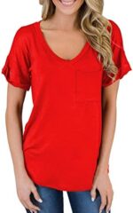 MIHOLL Women’s Short Sleeve V-Neck Shirts Loose Casual Tee T-Shirt