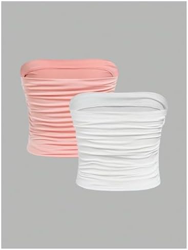 Milumia Girl’s 2 Pack Tube Top Ruched Strapless Going Out Basic Bandeau Tops