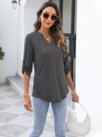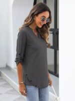 Category: Tops & Blouses Tags: Blouses, Button, Minetom, Neck, Rolled, Shirts, Side, Sleeve, Tops, tops blouses women, women tops blouses, Womens