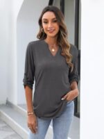 Home Women's Fashion Tops & Blouses Minetom Women’s Rolled Up 3/4 Sleeve Tops V Neck T Shirts Button Side Blouses