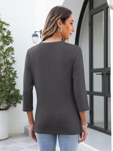 HOTYD 3/4 Sleeve Button Down Shirts for Women Dressy Casual V Neck Solid Shirts Loose Fit Spring Tops for Women