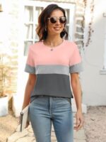 Minetom Women’s T Shirts Color Block Short Sleeve Tops Casual Summer Tees