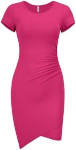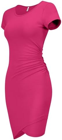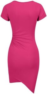 Missufe Women’s Summer Short Sleeve Fitted Ruched Bodycon Irregular Mini Sheath Dress