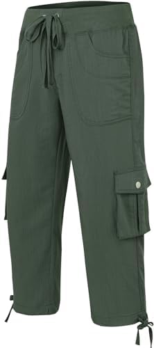 MoFiz Womens Capris with Pockets Loose Fit Casual Capri Pants Dressy Lightweight Ladies Baggy Cargo Pants for Hiking