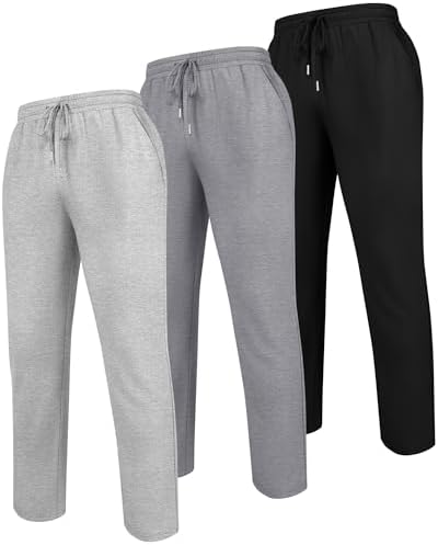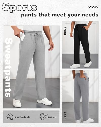 Neer 3 Pack Men’s Sweatpants Athletic Lounge Pants Open Bottom Yoga Baggy Casual Drawstring Lightweight Joggers with Pockets