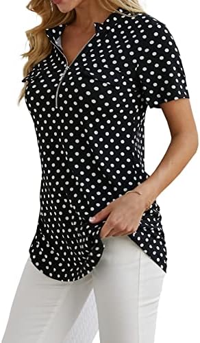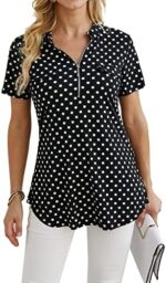 Ninedaily Women’s Summer Tops Short Sleeve Casual Blouse Zip Floral Tunic Shirts
